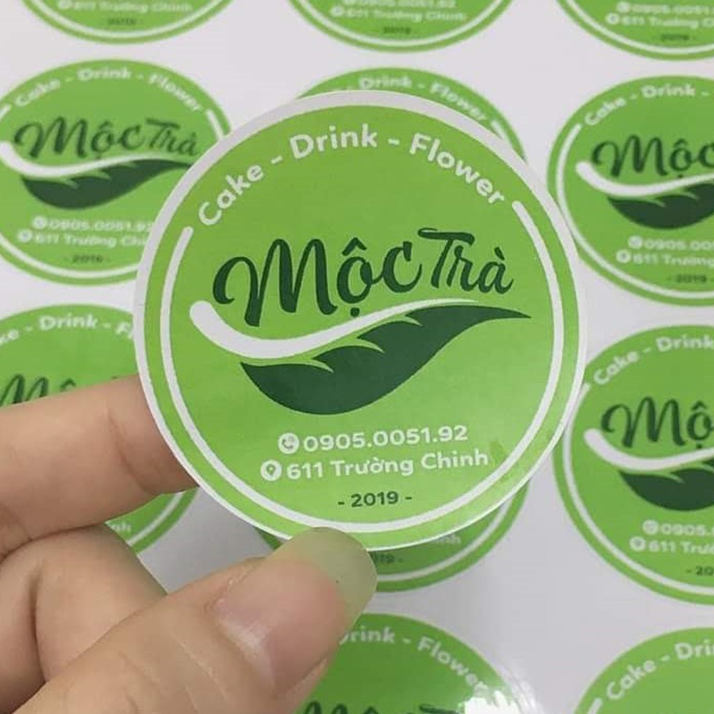 Logo thương hiệu & Sticker: Làm sticker logo dán lên ly nhựa, bao bì đóng gói hoặc quà tặng khách hàng để tăng độ nhận diện thương hiệu.