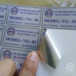 Tem thông số kỹ thuật: Dán lên máy móc, thiết bị điện tử, motor, máy bơm để ghi thông tin kỹ thuật, hướng dẫn sử dụng, cảnh báo an toàn.