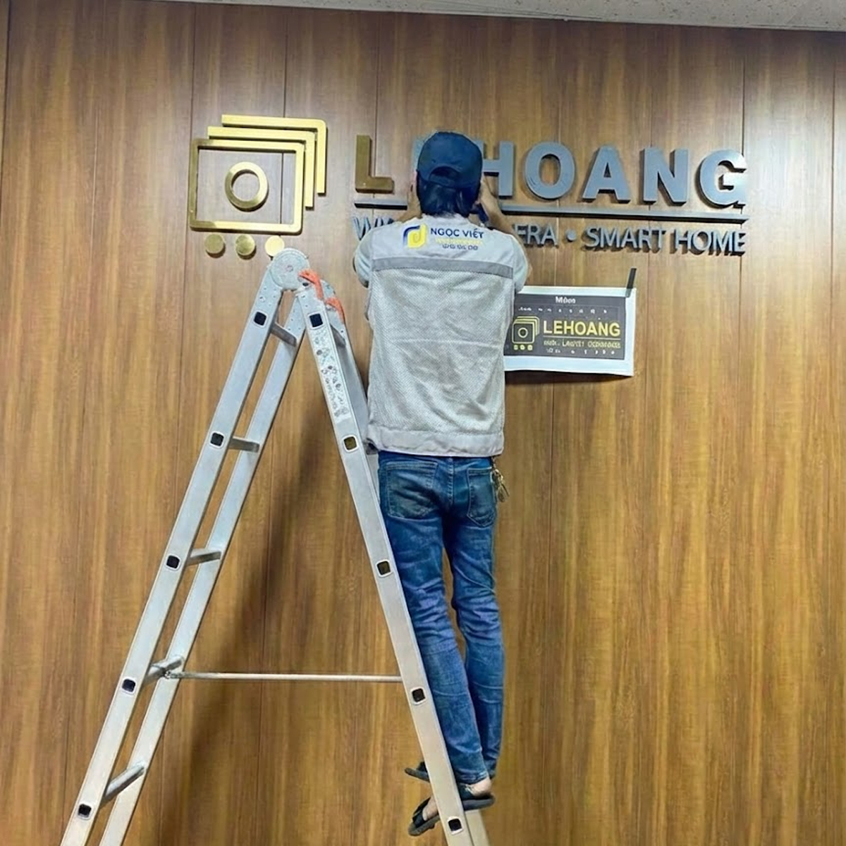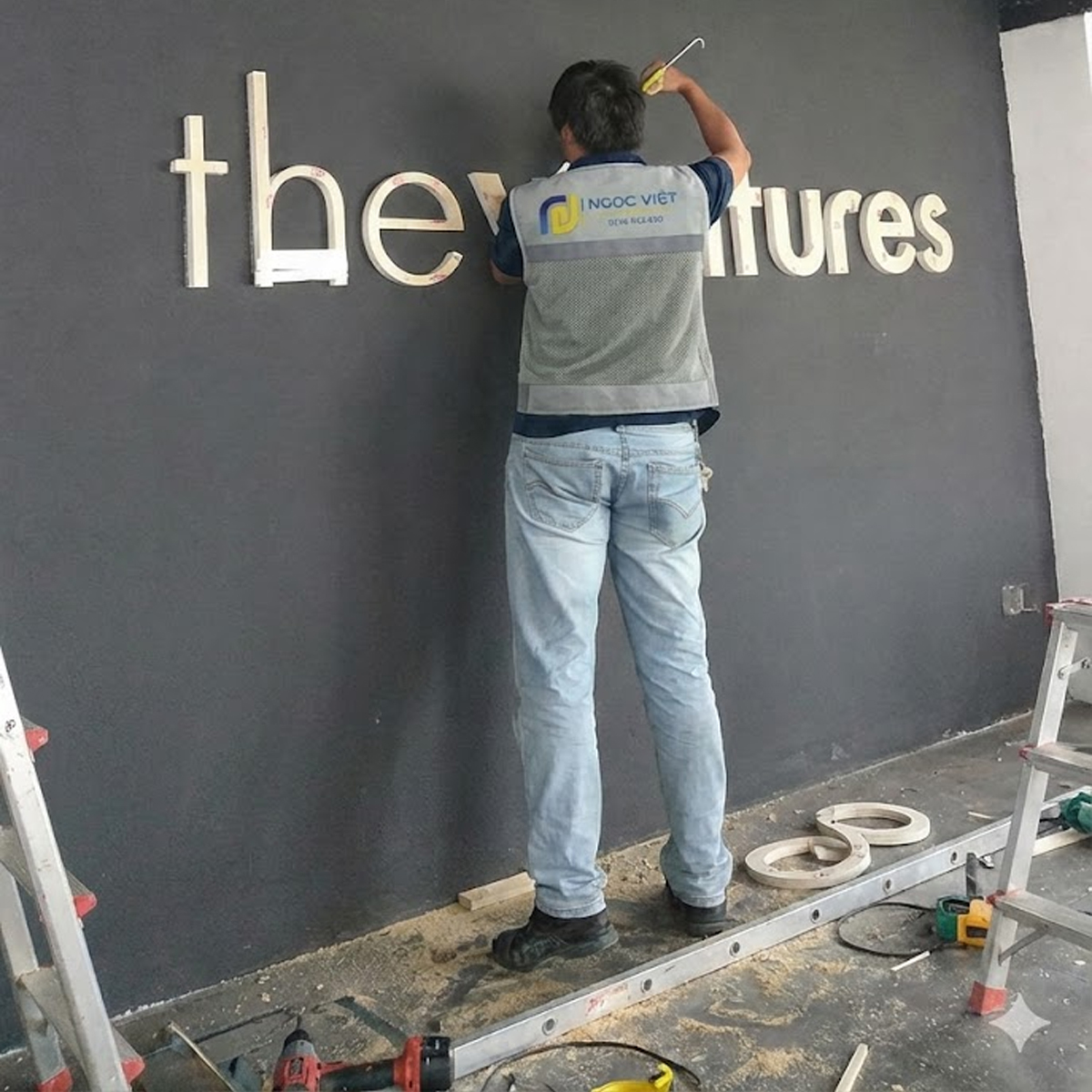 Dịch vụ thi công của Ngọc Việt tập trung vào sự tỉ mỉ và tính thẩm mỹ cao nhất, đảm bảo logo hài hòa tuyệt đối với không gian nội thất: